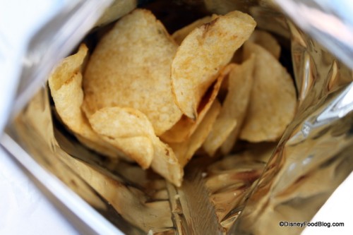 The chips served are the new Disney-brand chips, which are slightly thicker than the old Lays version (and probably not quite as tasty).