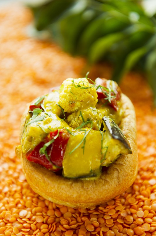 Bunny Chow (Vegetable Curry served in a Bread Loaf) in South Africa