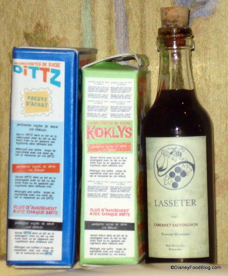 But my favorite part of the scene is the bottle of Lasseter wine sitting on top of the fridge… . Sadly, I don’t speak French or I’d be able to make out the words on the cereal boxes!