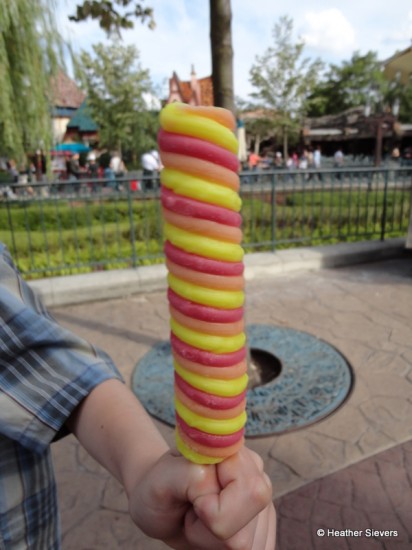 My boys tried the Super Twisters and loved them. Fruity and refreshing. Their only complaint? The bee situation. There are bees EVERYWHERE at Disneyland Paris right now, and they especially like Super Twister Popsicles.