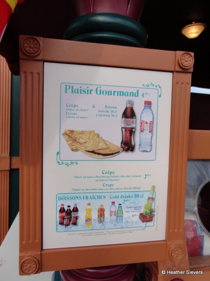 What I noticed at Disneyland Paris was variety. Crepes? Waffles? Tea Time Snacks? Pasta? Specialty Pop Corn? Freshly Spun Cotton Candy? Most made fresh right there as you order. It’s just not fair! Again, I wish I could have tried everything, but with one day to spend, we chose rides over food. I did however take photos to share.