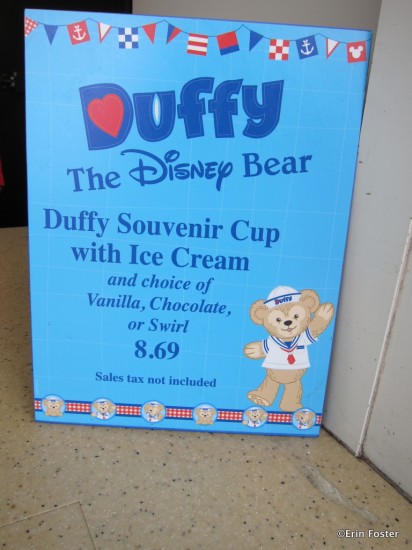 On a recent trip, I found Duffy-shaped souvenir mugs available with the purchase of an ice cream at the two kiosks nearest the entrance to World Showcase. Not coincidentally, these are also the food service locations closest to the Duffy meet-and-greet area.