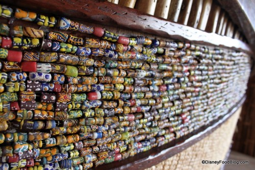 And the design of the resort was richly researched; it now offers a glimpse into the materials and decor that might be used in a true African Lodge, like these beads used to decorate the front of the check-in podium at Sanaa.