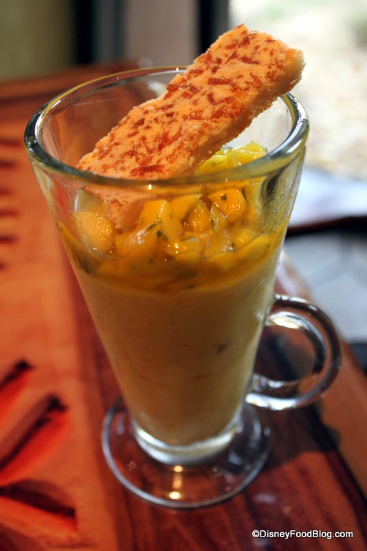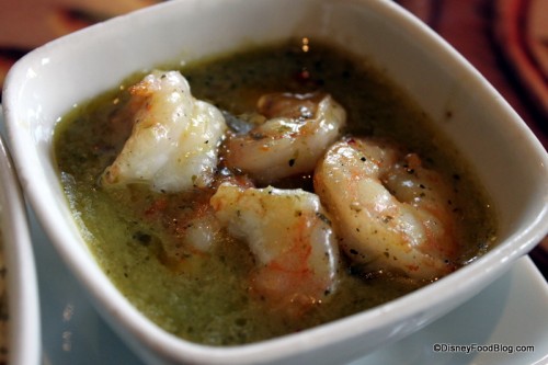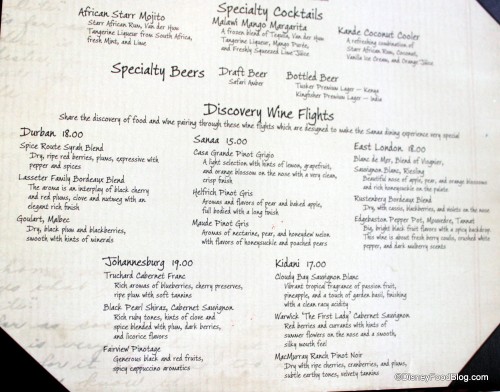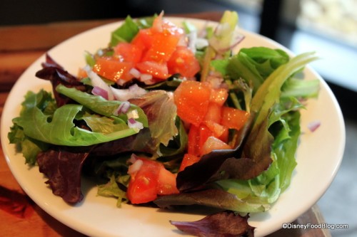 We began our meal with a Safari Amber and a Mango Margarita. The Amber is brewed especially for Walt Disney World and is sold at the Animal Kingdom and at the Animal Kingdom Lodge. It’s a deep, rich color with a malty taste, and gets points for going down easy, but not for being particularly outstanding or unique in any way. Most folks like it, but could take it or leave it.