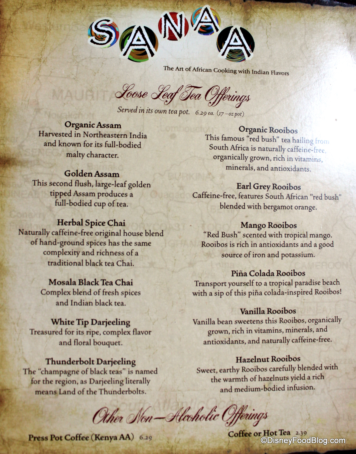 Sanaa’s servers are among the best in WDW. (Shoutout to Kim!) Their knowledge about the foods, wines and teas is extensive. One evening I wanted tea rather than dessert. Our server asked a few questions then suggested the Herbal Spice Chai, which was fantastic. It has become the standard by which I measure any other spice chai.