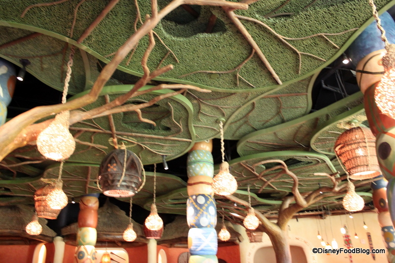 African patterns on the booths, a “tree branch” ceiling, and colorful African lanterns adorn the restaurant. It’s worth it just to take a walk around the place, checking out the completely different patterns and textures used throughout the decor.