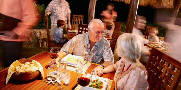 At dinner, the offerings rotate to explore the cultural influences and cuisine found on the island. Your menu might include Island Seafood Stew with Lotus Root, Vadouvan, Herb Aïoli, and Croutons; Seared Ahi Tuna and Shrimp, Kamuela Tomatoes, Basil, and Niçoise Olives;or Grilled Lobster with Vanilla Sauce and Seaweed Pancake.
