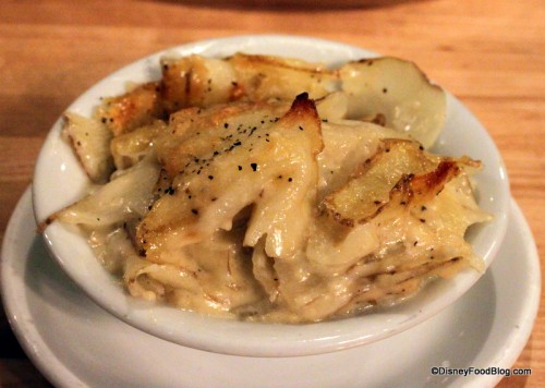 I’ve always enjoyed this restaurant when we are looking for a less hurried and relaxed meal. It doesn’t give you the rushed feeling you sometimes get at the restaurants in the parks. The food is on a par with most of the single table ticket resort eateries, good most of the times and never really too many misses. Any time my wife can get scalloped potatoes or mac and cheese as a side dish she’s in.