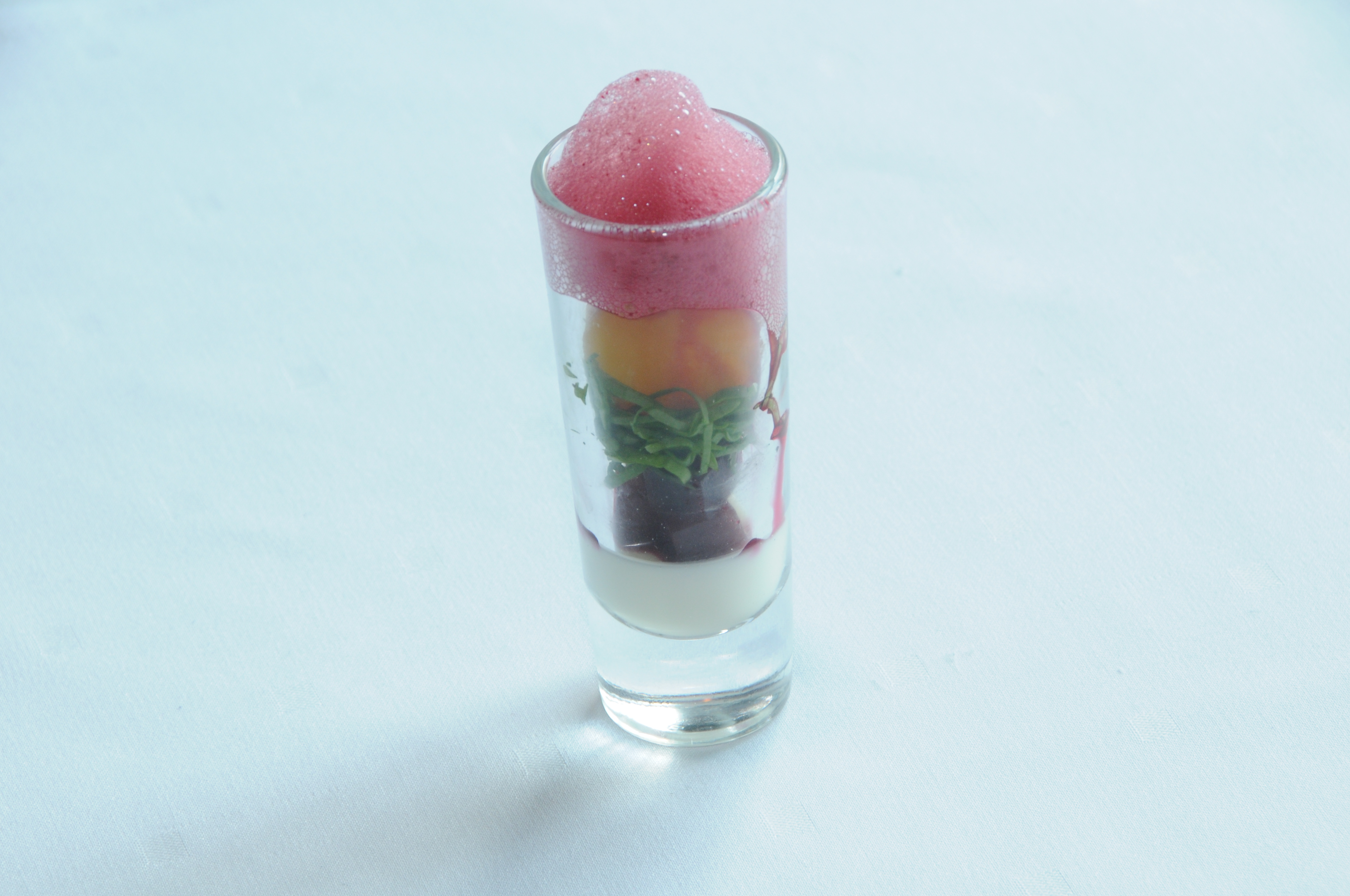 Saturday: Heirloom Beet Salad, Goat Cheese Fondue, Candied Walnuts, Ice Spinach