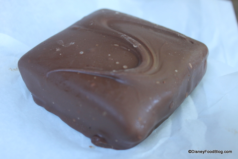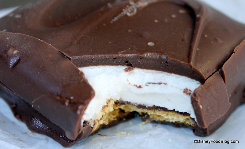 What you can still find regularly in Walt Disney World (and in Disneyland) are the the chocolate-covered s’mores, the sister candy to the peanut butter sandwich. They look exactly the same, but inside they’re oh-so-different!