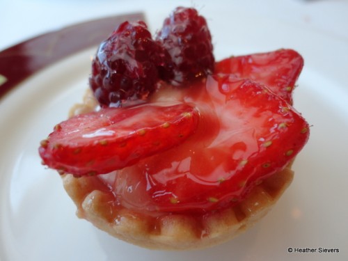 The menu items were brought out in courses beginning with the finger sandwiches. There was Gravadlex on Pumpernickel which was cream cheese mixed with sliced dill on pumpernickel bread, Shrimp in Cocktail Sauce on white bread, and Curried Chicken and Cilantro on whole grain bread, and Cucumber on white bread. My two favorites were the Cucumber on white bread and the Curried Chicken and Cilantro.