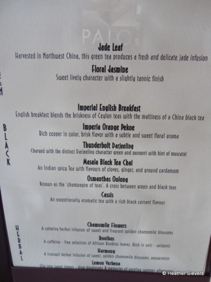 Maria stated off by handing us our “tea” menus and recommended some of her favorites.