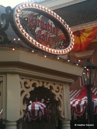 After your trip to Jamba Juice, head over to Disneyland’s Main Gate (you are allowed to bring your Jamba Juice in if you’d like) and continue into the park. The first thing you will notice is the lovely fall decor. Everything — and I mean everything — is decorated to the nines. Every window, every storefront, every everything. Take some time to notice all of the fun details as you make your way to your second stop, the Carnation Cafe.