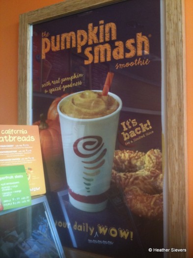 Our crawl is going to start in Downtown Disney at Jamba Juice. This is actually one of my most favorite stops along our little trip. It gets you right in the mood for pumpkin yumminess.