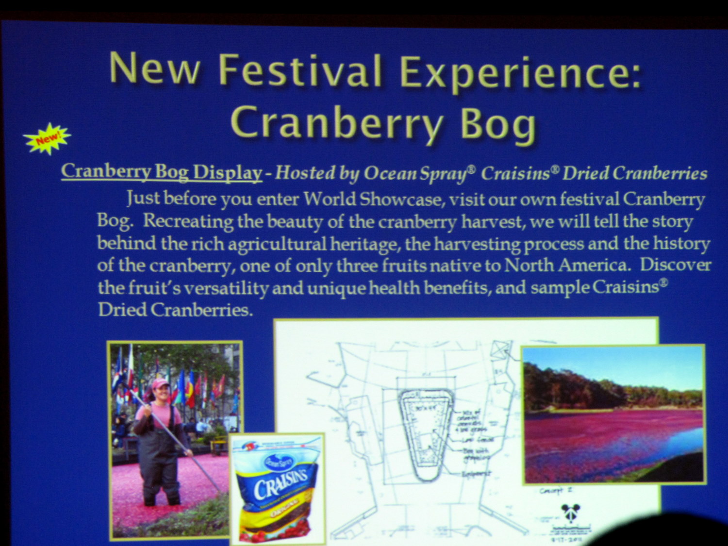 Yes. There will indeed be a cranberry bog at this year’s Food & Wine Festival! Craisins is a new sponsor with Disney, and we get to benefit!