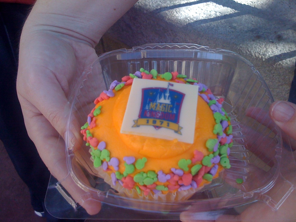 Lines were long for the special 40th Anniversary Cupcake available in the Magic Kingdom! Flavor choices were the classic chocolate or vanilla.