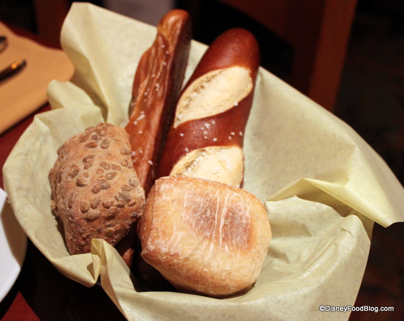Now, guests receive a basket with more free-form pretzel breadsticks and sourdough and multi-grain rolls. The pretzel bread did taste the same, but we’re not sure we love the change.