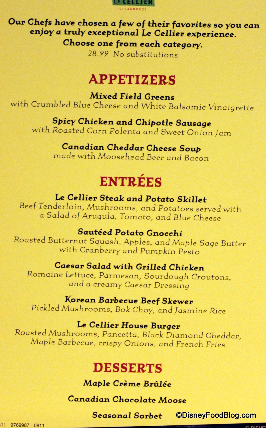 We were there in July. I ordered the Steak and Potato skillet and absolutely agree with you! It was very disappointing! My son had the filet because that’s a tradition for him and he was very happy with it. Le Cellier is now on my “can wait to go back list” along with Coral Reef. So many other great restaurants to go to!