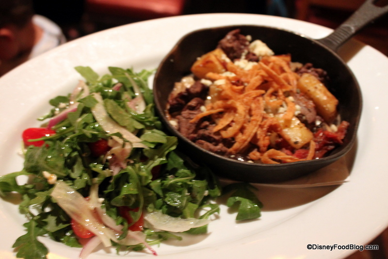 For entrees, we decided to sample the new Steak and Potato Skillet as well as stick with an old favorite — the mushroom filet.