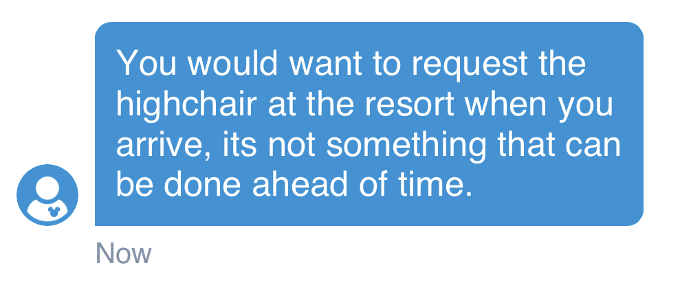 We would recommend calling the resort you’ll be staying in ahead of time just to confirm whether they generally have high chairs available for you to use in your room.