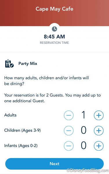 At Table Service restaurants, when you check-in for your dining reservation (either in person or via Mobile Check-In), Cast Members will ask for the ages of the children in your party. They may specifically inquire about the number of high chairs and/or booster seats you need.