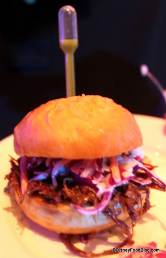 Next up — the Kurobota Pork Sliders I’d seen everyone wandering around the room with! I had to try one! These were done by Chef Charles “Bubba” Dolson of Cinderella’s Royal Table.