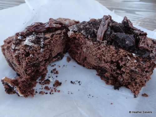 My ten year old was much more on point with his choice, the Oreo Brownie. Honestly, you really can’t go wrong with these. This brownie is located at multiple locations throughout the park and I’ve never had a bad one. Moist, but not super chewy, this chocolatey treat is mixed with Oreo cookie crumbles and topped with pieces of Oreo drizzled with chocolate. My kid barely let me have a bite before devouring the entire thing.