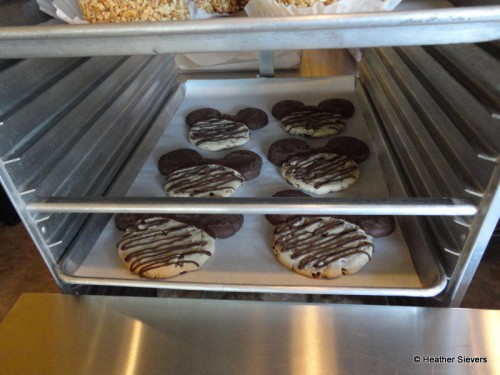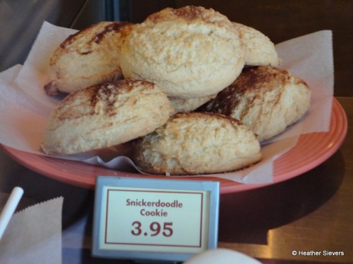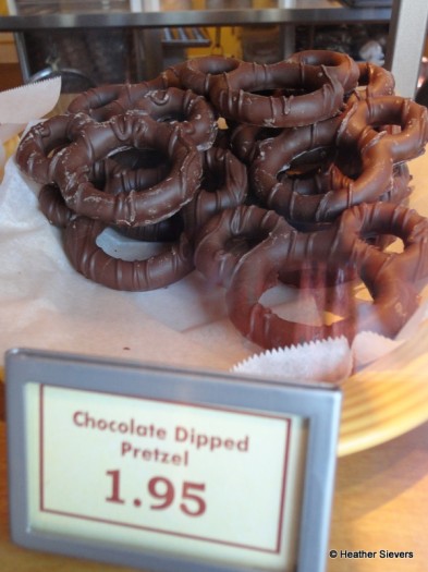 We had the option of tasting the Snickerdoodle, a Chocolate Dipped Pretzel, or a piece of the Large Mickey Chocolate Chip cookie. I tried the Snickerdoodle, which was pretty tasty but a bit dry. I definitely prefer the Chocolate Chip Supreme Cookie. My boys went for the Chocolate Dipped Pretzel, which they thoroughly enjoyed.