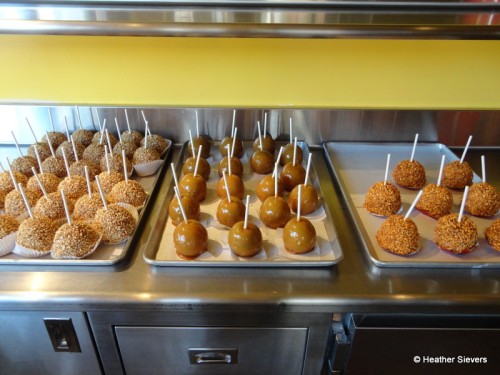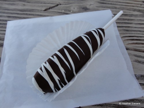 After we finished up our little taste-testing session, I headed back to the window for another look. Somehow, I missed something I’d never seen at the Disneyland Resort: Chocolate Dipped Fruit Skewers.