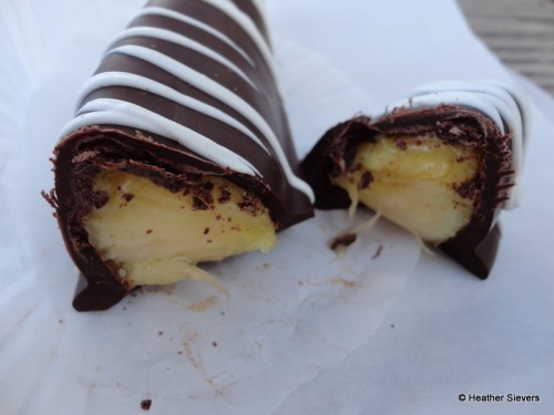 These particular ones were pineapple and they were delicious — by far my most favorite item of the four items we purchased. The chocolate was fresh tasting; not waxy, but creamy and melt in your mouth yummy. The pineapple was golden and ripe. Not mushy, not hard — perfect and sweet.