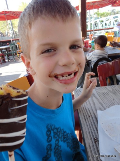 I had a few bites and then my seven year old went to town. It’s a good thing I keep wet wipes in my purse, I really needed them after this treat.