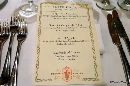 Menu for the Italy Food & Wine Pairing at Tutto Italia on Wednesday October 19, 2011 - click image for larger version