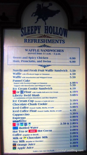 We’re sorry to report that some of our favorites have now been taken off of the menu to make way for the waffle sandwiches. The chicken and wild rice soup and the large Mickey-head waffles can no longer be purchased here at Sleepy Hollow. 🙁