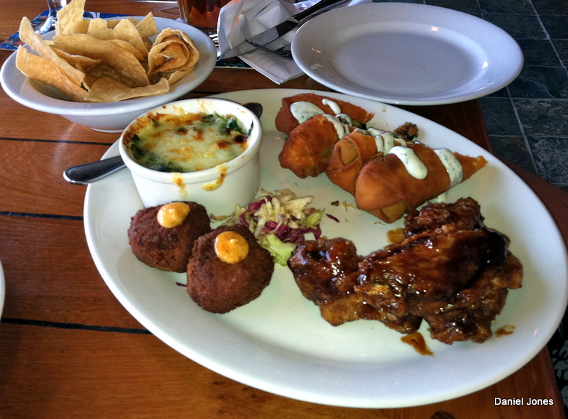 We started with the “Sampler Platter,” which as the name suggests offers a little bit of everything. The dish featured crab cakes, southwestern egg rolls, chicken wings, and spinach & artichoke dip. All the items were quite tasty, especially the chicken wings, which I’m pretty sure were actually created in heaven.