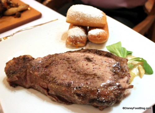 At Yachtsman Steakhouse in Disney’s Yacht Club Resort, the Sweet Potato Beignet was a rib-eye steak side dish that we thought was a lot of fun!