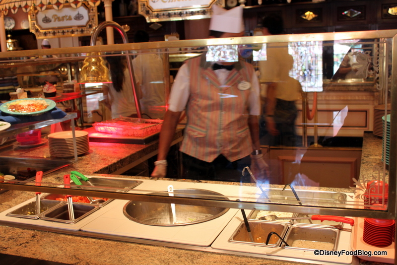 While this location is a table-service character buffet (serving Breakfast With Minnie and Friends) in the morning, it switches to a counter service buffet in the afternoon and evening.