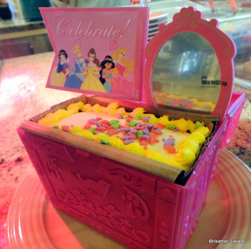 The “frosting” was actually straight cheesecake! Honestly, there wasn’t much “frosting-ness” to the topping, which isn’t necessarily a bad thing if you like very sweet cheesecake! 😉 We asked a cast member on the way out about the “frosting” — she mentioned that it was pretty much just cheesecake…