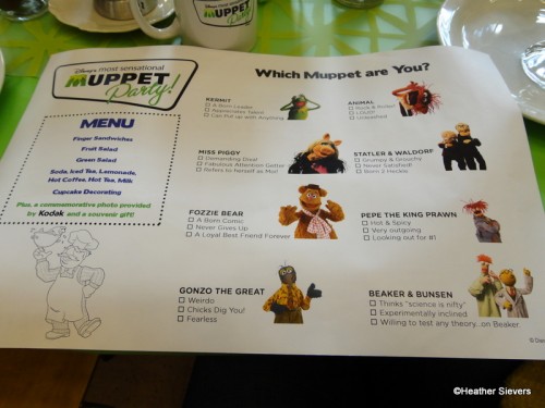 As our drinks were being brought out to us, we were asked to look at our menus and decide which Muppet we were most like. My boys told me I was half Kermit, half Fozzie, so I got two stickers! Each guest shared who they were most like and they got to wear our Muppet stickers proudly!