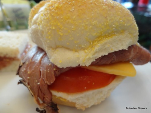 But wait! There are still more sandwiches to choose from. Next up were roast beef with cheese and tomato. The roast beef minis came on cute little buns with fresh tomato, a slice of American cheese and a thin layer of mayo.