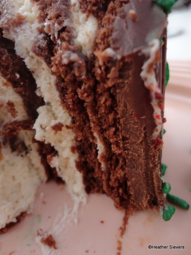 Now that we’ve taken a visual tour of this little beauty, let’s talk about taste. Chocolate, chocolate, and more chocolate! If you are a chocolate lover, this is the cake for you!