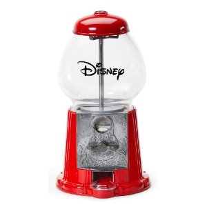 This Walt Disney Limited Edition Gumball Candy Machine dispenses small candy including gumballs. While it can be set for complimentary dispensing, the gumball machine will accept all coins!