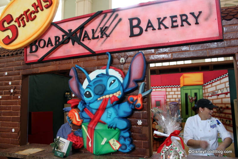 Stitch has taken over the bakery at the Boardwalk Inn. Stop by to see this gingerbread display and pick up a pin!