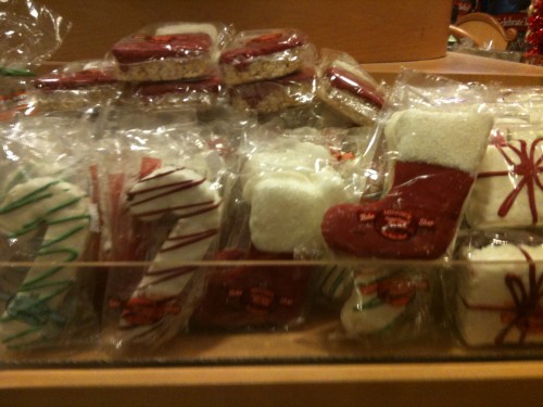 Emily J. on the Disney Food Blog Facebook page suggests using Disney holiday-themed Rice Krispie treats as stocking stuffers. I like the way she thinks!