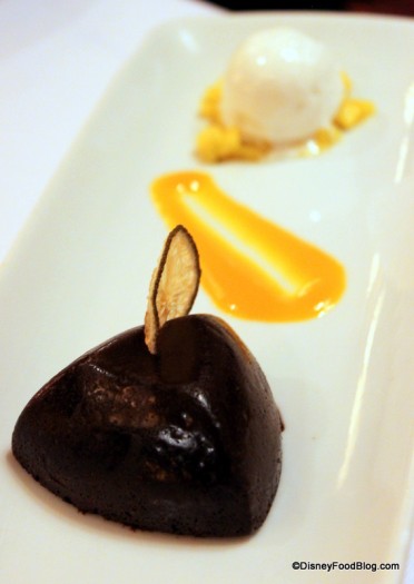To lighten things up and offer some complementary flavors, the dish was served with lime sorbet and mango compote. I enjoyed the lime sorbet (even when eaten with the cake), but wasn’t too much a fan of the mango compote.