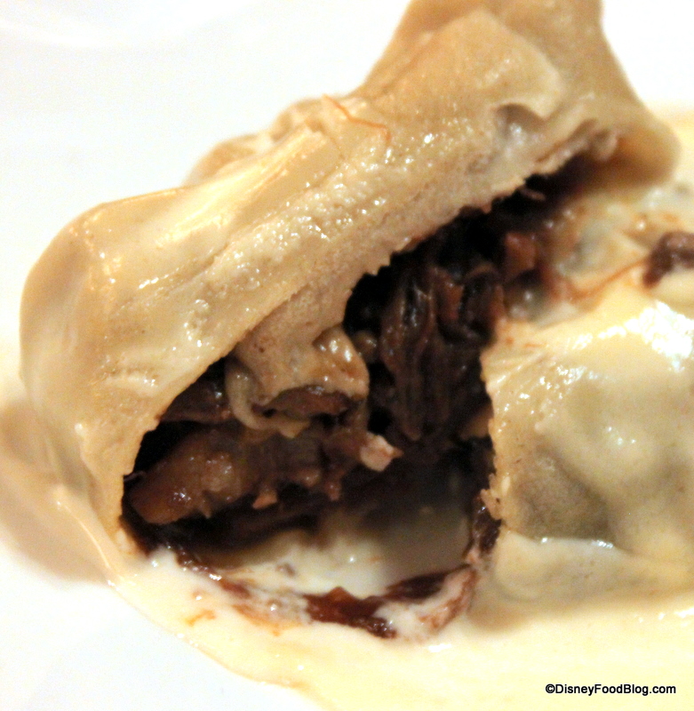 For our entrees, we ordered some extremely different items on the menu! Personally, I couldn’t get past the term “flagship cheddar fondue” and thus had to order the Braised Beef Ravioli, which came with the fondue as a sauce.