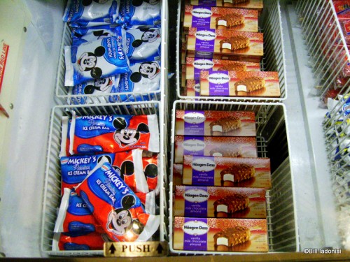 When you enter the restaurant, the Bakery is on the left. The Mara has a respectable bakery also. Here you will find bagels, muffins, coffee rolls, bread, cookies, and croissants; and there is a freezer with some of your favorite ice cream treats. Next to the bakery is a wine rack and a wall of snacks.