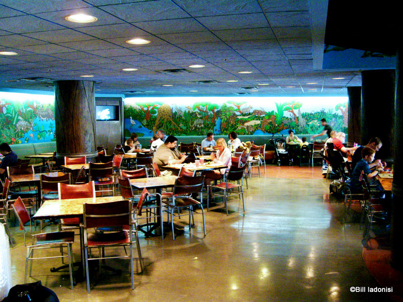 But other than that, the area looks like a standard cafeteria. In the rear corner is a monitor that displays Disney Cartoon Shorts. However, the dining area is large and the tables are not crowded together, so you are not in your neighbor’s lap. Even during the busy times, you do not get that “claustrophobic” feeling.
