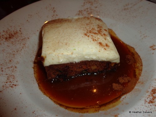 I am a huge fan of carrot cake, so when I saw the options on the dessert menu, I knew immediately that I wanted to try this out. The cake was moist, the frosting was a thick layer of sweet and creamy deliciousness & the caramel rum sauce was served warm underneath the cake. The rum was very mild, in fact I’d pretty much consider this “caramel” sauce.