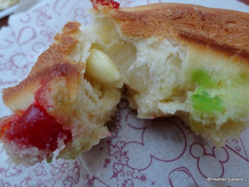 This tasty treat was your standard Disneyland Resort churro (only shorter) served up warm filled with sweet strawberry goo. It sort of reminded us of a Strawberry Churro topped with cinnamon. Needless to say, it was devoured in just a few seconds. I’m thinking that this item needs to become a regular resident in the Disney Churro carts. Pretty yummy! (Editor’s Note: Strawberry Churros can be found from time to time in Disney World as well!)