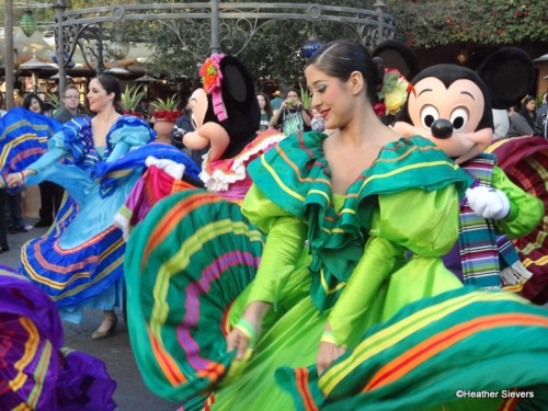 After visiting with The Three Caballeros (we didn’t want to stand in line for Mickey & Minnie, too long!), we got lucky and ended up right in the middle of a mini parade type performance of Mickey and Minnie on their way to their meet and greet in Zocalo Park.